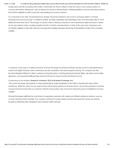 8/6/25, 9:16 AM Al Ansari Exchange Addresses Indian Rupee Drop to Near Record Lows and Its Implications for UAE Remittance Market - Middle Ea…