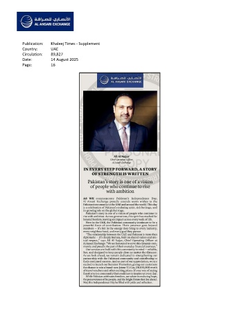 Publication: Khaleej Times - Supplement Country: UAE Circulation: 89,827 Date: 14 August 2025 Page: 16