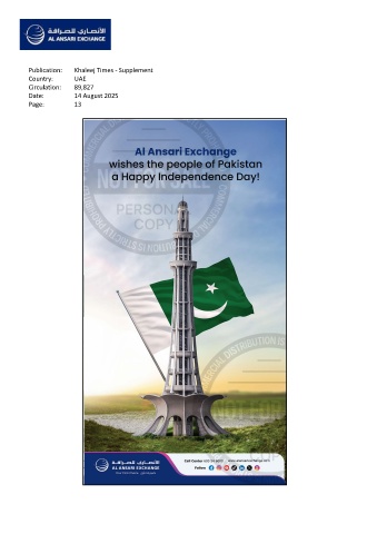 Publication: Khaleej Times - Supplement Country: UAE Circulation: 89,827 Date: 14 August 2025 Page: 13
