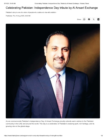 8/14/25, 10:46 AM Celebrating Pakistan: Independence Day Tribute by Al Ansari Exchange | Khaleej Times