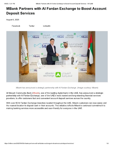 8/8/25, 3:21 PM MBank Partners with Al Fardan Exchange to Boost Account Deposit Services - INTLBM