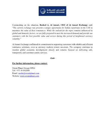 Commenting on the situation, Rashed A. Al Ansari, CEO of Al Ansari Exchange said: