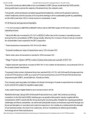 8/14/25, 9:34 AM Al Ansari Financial Services H1 operating income up 13% to $173.7mln