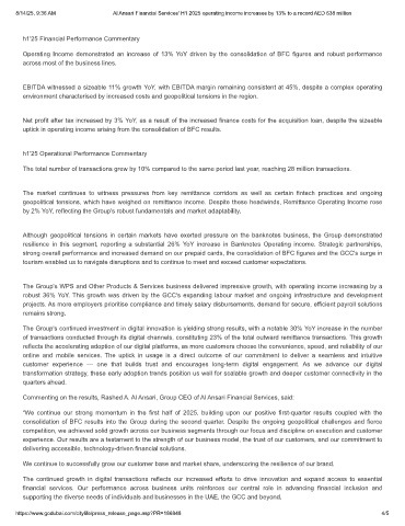 8/14/25, 9:36 AM Al Ansari Financial Services' H1 2025 operating income increases by 13% to a record AED 638 million