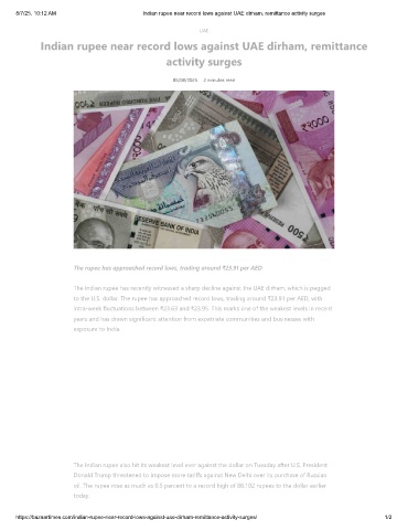 8/7/25, 10:12 AM Indian rupee near record lows against UAE dirham, remittance activity surges