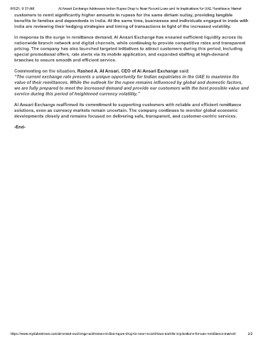 8/6/25, 9:33 AM Al Ansari Exchange Addresses Indian Rupee Drop to Near Record Lows and Its Implications for UAE Remittance Market