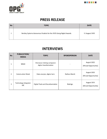 1 Bentley Systems Announces Finalists for the 2025 Going Digital Awards 11 August 2025