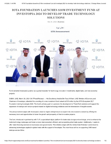 4/12/24, 1:46 PM IOTA Foundation launches $10m investment fund at Investopia 2024 to develop trade technology solutions | Chicago News Journal