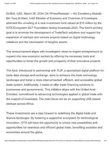 4/12/24, 2:34 PM IOTA Foundation launches $10m investment fund at Investopia 2024 - NEWSnet - News... at it used to be