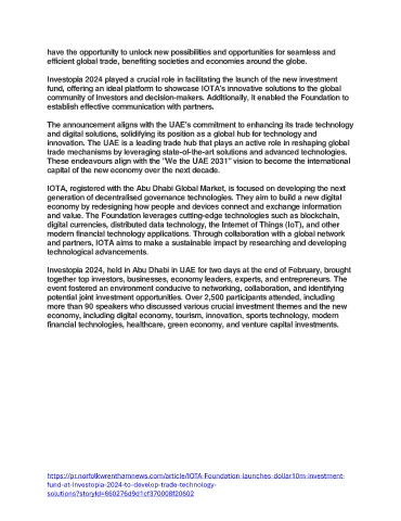 fund, offering an ideal platform to showcase IOTA's innovative solutions to the global