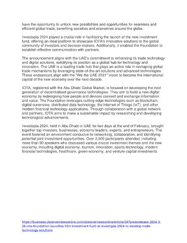 fund, offering an ideal platform to showcase IOTA's innovative solutions to the global