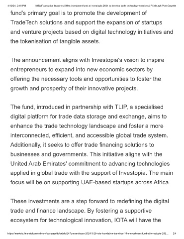 4/12/24, 2:40 PM IOTA Foundation launches $10m investment fund at Investopia 2024 to develop trade technology solutions | Pittsburgh Post-Gazette