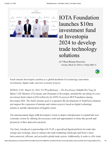 https://smb.panews.com/article/IOTA-Foundation-launches-dollar10m-investment-fund-at-Investopia-2024-to-develop-trade-technology-solutions?stor… 1/2