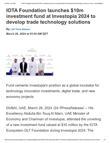 4/12/24, 2:42 PM IOTA Foundation launches $10m investment fund at Investopia 2024 to develop trade technology solutions | User | poteaudailyne…