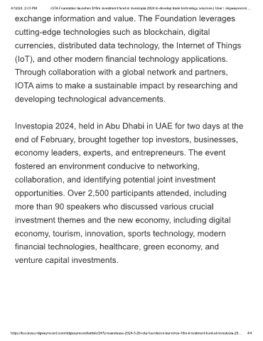 4/12/24, 2:43 PM IOTA Foundation launches $10m investment fund at Investopia 2024 to develop trade technology solutions | User | ridgwayrecord.…