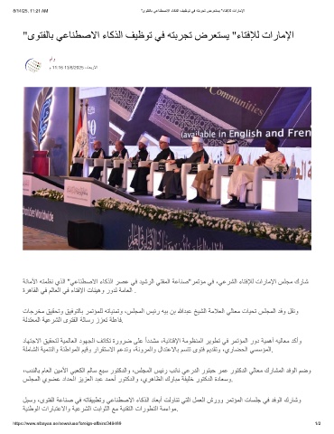 8/14/25, 11:21 AM "ىوﺗﻔﻟﺎﺑ ﻲﻋﺎﻧطﺻﻻا ءﺎﻛذﻟا فﯾظوﺗ ﻲﻓ ﮫﺗﺑرﺟﺗ ضرﻌﺗﺳﯾ "ءﺎﺗﻓﻺﻟ تارﺎﻣﻹا