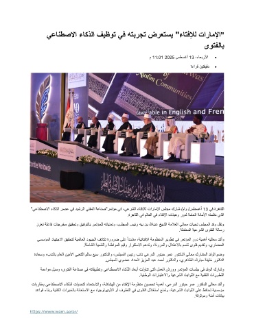 "يعانطصلاا ءاكذلا رصع يف ديشرلا يتفملا ةعانص"رمتؤم يف ،يعرشلا ءاتفلإل تاراملإا سلجم كراش /ماو /سطسغأ 13 يف ةرهاقلا
