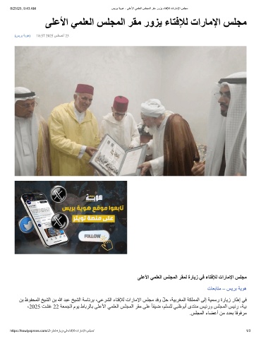 ،2025 ﺖﺸﻏ 22 ﺔﻌﻤﺠﻟا مﻮﯾ طﺎﺑﺮﻟﺎﺑ ﻰﻠﻋﻷا ﻲﻤﻠﻌﻟا ﺲﻠﺠﻤﻟا ﺮﻘﻣ ﻰﻠﻋ ً ﺎﻔﯿﺿ ،ﻢﻠﺴﻠﻟ ﻲﺒظﻮﺑأ ىﺪﺘﻨﻣ ﺲﯿﺋرو ﺲﻠﺠﻤﻟا ﺲﯿﺋر ،ﺔﯿﺑ