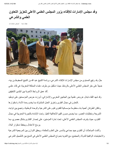 8/25/25, 9:42 AM ﻲﻋرﺷﻟاو ﻲﻣﻠﻌﻟا نوﺎﻌﺗﻟا زﯾزﻌﺗﻟ ﻰﻠﻋﻷا ﻲﻣﻠﻌﻟا سﻠﺟﻣﻟا روزﯾ ءﺎﺗﻓﻺﻟ تارﺎﻣﻹا سﻠﺟﻣ دﻓو - Oulemag news