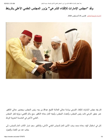 8/25/25, 9:35 AM نطوﻟا ةدﯾرﺟ › طﺎﺑرﻟﺎﺑ ﻰﻠﻋﻷا ﻲﻣﻠﻌﻟا سﻠﺟﻣﻟا روزﯾ ”ﻲﻋرﺷﻟا ءﺎﺗﻓﻺﻟ تارﺎﻣﻹا سﻠﺟﻣ“ دﻓو