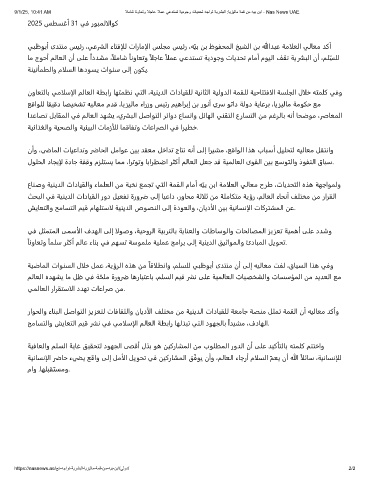 ﺢﻣﺎﺴﺘﻟاو ﺶﻳﺎﻌﺘﻟا ﻢﻴﻗ رشﻧ ﻲﻓ ﻲﻣالﺳإلا ﻢﻟﺎﻌﻟا ﺔﻄﺑار ﺎﻬﻟﺬﺒﺗ ﻲﺘﻟا دﻮﻬﺠﻟﺎﺑ ًاﺪﻴﺸﻣ ،فدﺎﻬﻟا.