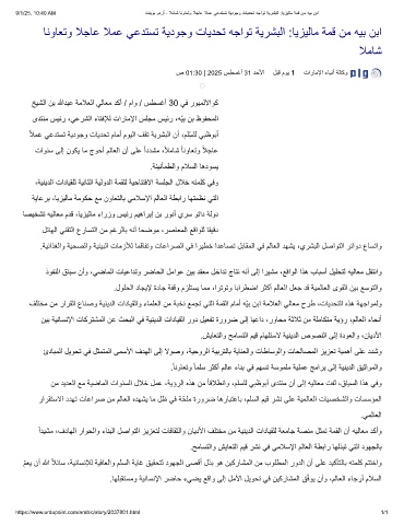ﺔﯾﺎﻋرﺑ ،ﺎﯾزﯾﻟﺎﻣ ﺔﻣوﻛﺣ ﻊﻣ نوﺎﻌﺗﻟﺎﺑ ﻲﻣﻼﺳﻹا مﻟﺎﻌﻟا ﺔطﺑار ﺎﮭﺗﻣظﻧ ﻲﺗﻟا