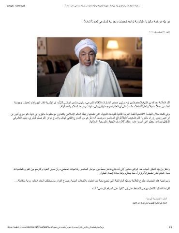 ﺔﯾدﻮﺟو تﺎﯾﺪﺤﺗ مﺎﻣأ مﻮﯿﻟا ﻒﻘﺗ ﺔﯾﺮﺸﺒﻟا نأ ،ﻢﻠِّﺴﻠﻟ ﻲﺒظﻮﺑأ ىﺪﺘﻨﻣ ﺲﯿﺋر ،ﻲﻋﺮﺸﻟا ءﺎﺘﻓﻺﻟ تارﺎﻣﻹا ﺲﻠﺠﻣ ﺲﯿﺋر ،ﮫّﯿﺑ ﻦﺑ ظﻮﻔﺤﻤﻟا ﺦﯿﺸﻟا ﻦﺑ ﷲﺪﺒﻋ ﺔﻣ ّ ﻼﻌﻟا ﺪﻛأ