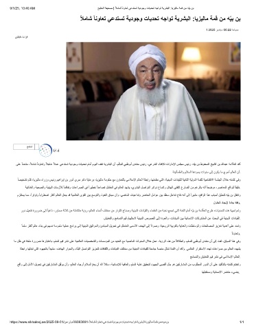 ﻰﻠﻋ ًاددﺷﻣ ،ًﻼﻣﺎﺷ ً ﺎﻧوﺎﻌﺗو ًﻼﺟﺎﻋ ًﻼﻣﻋ ﻲﻋدﺗﺳﺗ ﺔﯾدوﺟو تﺎﯾدﺣﺗ مﺎﻣأ موﯾﻟا فﻘﺗ ﺔﯾرﺷﺑﻟا نأ ،م ْ ﻠِّﺳﻠﻟ ﻲﺑظوﺑأ ىدﺗﻧﻣ سﯾﺋر ،ﻲﻋرﺷﻟا ءﺎﺗﻓﻺﻟ تارﺎﻣﻹا سﻠﺟﻣ سﯾﺋر ،ﮫّﯾﺑ نﺑ ظوﻔﺣﻣﻟا ﺦﯾﺷﻟا نﺑ ﷲدﺑﻋ ﺔﻣ ّ ﻼﻌﻟا دﻛأ