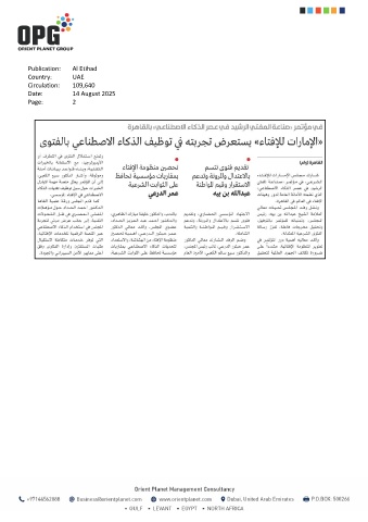 Publication: Al Etihad Country: UAE Circulation: 109,640 Date: 14 August 2025 Page: 2