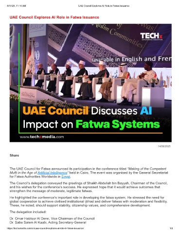 8/14/25, 11:16 AM UAE Council Explores AI Role in Fatwa Issuance