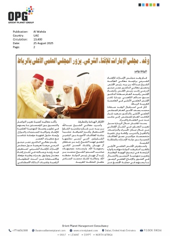 Publication: Al Wahda Country: UAE Circulation: 19,400 Date: 25 August 2025 Page: 2