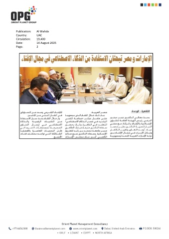 Publication: Al Wahda Country: UAE Circulation: 19,400 Date: 14 August 2025 Page: 2