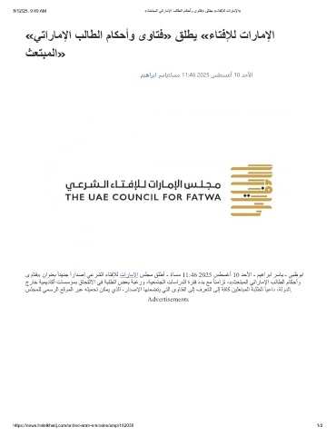 8/12/25, 9:49 AM «ثﻌﺗﺑﻣﻟا ﻲﺗارﺎﻣﻹا بﻟﺎطﻟا مﺎﻛﺣأو ىوﺎﺗﻓ» ﻖﻠطﯾ «ءﺎﺗﻓﻺﻟ تارﺎﻣﻹا»