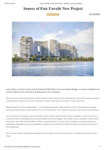 11/5/25, 9:42 AM Source Of Fate Unveils New Project - Retail & Leisure International
