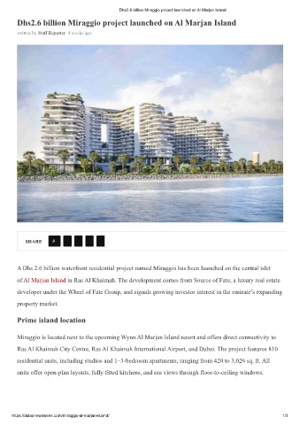 of Al Marjan Island in Ras Al Khaimah. The development comes from Source of Fate, a luxury real estate