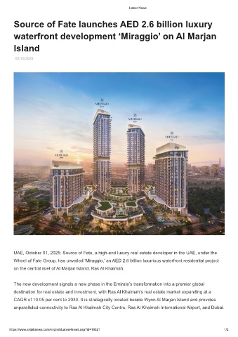 UAE, October 01, 2025: Source of Fate, a high-end luxury real estate developer in the UAE, under the