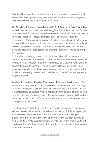stated: “We are pleased to launch Miraggio in Ras Al Khaimah, an Emirate
