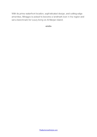 With its prime waterfront location, sophisticated design, and cutting-edge amenities, Miraggio is poised to become a landmark icon in the region and set a benchmark for luxury living on Al Marjan Island. -ends- Thefashionwithstyle.com