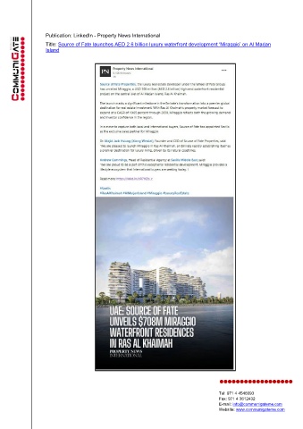 Title: Source of Fate launches AED 2.6 billion luxury waterfront development ‘Miraggio’ on Al Marjan