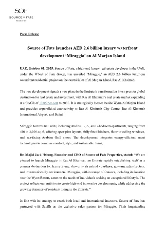 UAE, October 01, 2025: Source of Fate, a high-end luxury real estate developer in the UAE,