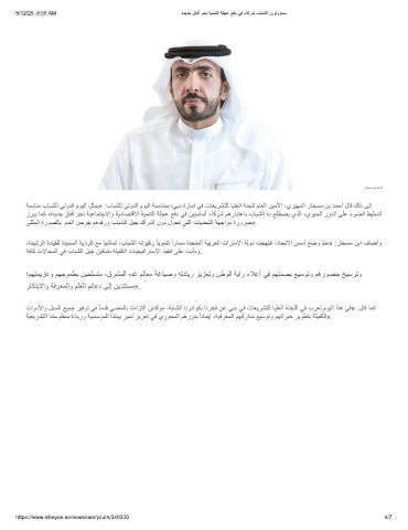 ﺔﺑﺳﺎﻧﻣ بﺎﺑﺷﻠﻟ ﻲﻟودﻟا موﯾﻟا لﺛﻣﯾ» :بﺎﺑﺷﻠﻟ ﻲﻟودﻟا موﯾﻟا ﺔﺑﺳﺎﻧﻣﺑ ،ﻲﺑد ةرﺎﻣإ ﻲﻓ تﺎﻌﯾرﺷﺗﻠﻟ ﺎﯾﻠﻌﻟا ﺔﻧﺟﻠﻟ مﺎﻌﻟا نﯾﻣﻷا ،يرﯾﮭﻣﻟا رﺎﺣﺳﻣ نﺑ دﻣﺣأ لﺎﻗ كﻟذ ﻰﻟإ