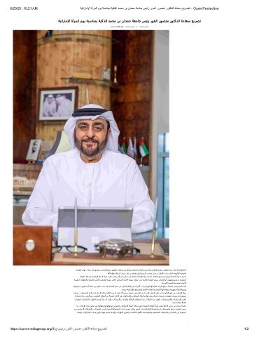 8/29/25, 10:21 AM ﺔﯾﺗارﺎﻣﻹا ةأرﻣﻟا موﯾ ﺔﺑﺳﺎﻧﻣﺑ ﺔﯾﻛذﻟا دﻣﺣﻣ نﺑ نادﻣﺣ ﺔﻌﻣﺎﺟ سﯾﺋر روﻌﻟا روﺻﻧﻣ روﺗﻛدﻟا ةدﺎﻌﺳ ﺢﯾرﺻﺗ – Open Production