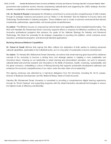 9/2/25, 9:53 AM Hamdan Bin Mohammed Smart University and Ministry of Industry and Advanced Technology Sign MoU to Empower National Talent …