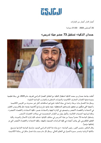 ﺔﻴﻤﻴﻠﻌﺗ ﺔﻠﺣر ﻓ ،2025 مﺎﻋ ﻒﻳﺮﺨﻟ ﺳارﺪﻟا ﻞﺼﻔﻟا قﻼﻄﻧا ﻊﻣ ﺔﺒﻠﻄﻟا لﺎﺒﻘﺘﺳا ﺔﻴﻛﺬﻟا ﺪﻤﺤﻣ ﻦﺑ ناﺪﻤﺣ ﺔﻌﻣﺎﺟ ﺖﻨﻠﻋأ