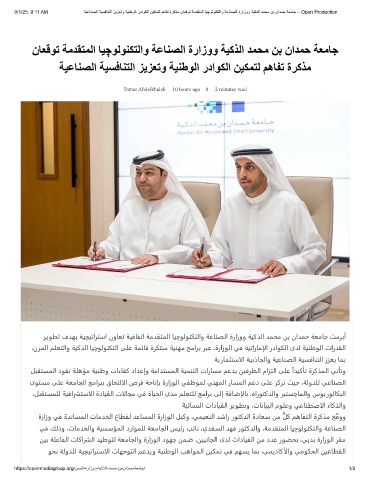 9/1/25, 9:11 AM ﺔﯾﻋﺎﻧﺻﻟا ﺔﯾﺳﻓﺎﻧﺗﻟا زﯾزﻌﺗو ﺔﯾﻧطوﻟا رداوﻛﻟا نﯾﻛﻣﺗﻟ مھﺎﻔﺗ ةرﻛذﻣ نﺎﻌﻗوﺗ ﺔﻣدﻘﺗﻣﻟا ﺎﯾﭼوﻟوﻧﻛﺗﻟاو ﺔﻋﺎﻧﺻﻟا ةرازوو ﺔﯾﻛذﻟا دﻣﺣﻣ نﺑ نادﻣﺣ ﺔﻌﻣﺎﺟ – Open Production