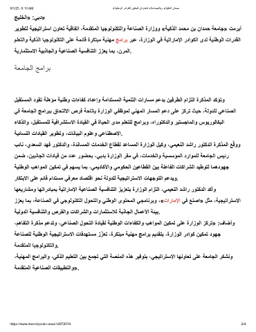 ،مھﺎﻔﺗﻟا ةرﻛذﻣ مﻋدﺗو ،ﻲﻋﺎﻧﺻﻟا لوﺣﺗﻟا ةدﺎﯾﻘﻟ ﺔﯾﻧطوﻟا تاءﺎﻔﻛﻟاو بھاوﻣﻟا نﯾﻛﻣﺗ ﻰﻠﻋ ةرازوﻟا زﻛرﺗ» :فﺎﺿأو