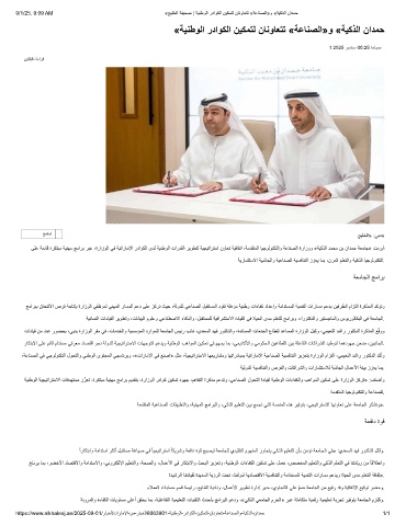 9/1/25, 9:09 AM «ﺞﯾﻠﺧﻟا ﺔﻔﯾﺣﺻ | ﺔﯾﻧطوﻟا رداوﻛﻟا نﯾﻛﻣﺗﻟ نﺎﻧوﺎﻌﺗﺗ «ﺔﻋﺎﻧﺻﻟا»و «ﺔﯾﻛذﻟا نادﻣﺣ