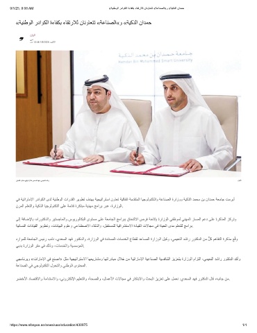 9/1/25, 9:08 AM «ﺔﯾﻧطوﻟا رداوﻛﻟا ةءﺎﻔﻛﺑ ءﺎﻘﺗرﻼﻟ نﺎﻧوﺎﻌﺗﺗ «ﺔﻋﺎﻧﺻﻟا«و «ﺔﯾﻛذﻟا نادﻣﺣ