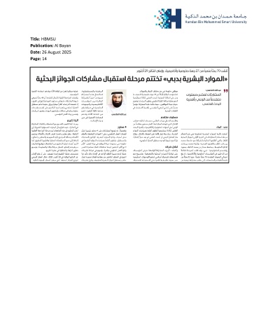 Title: HBMSU Publication: Al Bayan Date: 26 August 2025 Page: 14