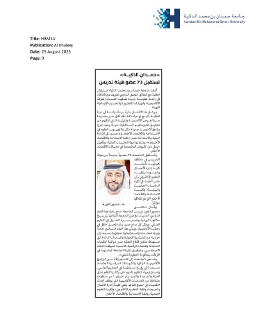 Title: HBMSU Publication: Al Khaleej Date: 25 August 2025 Page: 9